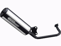デザイン面にも力を入れているので、ルックス重視のユーザーにもオススメできる完成度の高いマフラーだ。マテリアルはフランジ、エキゾーストパイプにスチールを採用。仕上げはノーマルと同じツヤ消しの耐熱ブラック塗装が施されている。サイレンサーアクターにはアルミ素材が採用されていて、見た目の高級感も抜群だ。パワーフィールは、カタログスペックによると低中回転域重視となっているが、実際に乗ってみた間隔では高回転域の抜けも良くパンチもありGOOD、最高速もメーターを振り切るほどでレブ特性も申し分なし。もちろんカタログどおり中低速トルクも十分だった。ノーマルマシンにポン付けで、そのポテンシャルを体感できるというセッティングフリーな設計は、ビギナーにとってうれしいポイント。更なるポテンシャルアップを求める場合は、ウェイトローラーの重さを微調整してあげるとゼロ発信からのレスポンスが格段に向上するので、ハイエンドユーザーにもおススメ。気になるエキゾーストノートは、同社独自のサイレンサー構造「ライトV・E・S構造」を採用することで、アイドリング時のサウンドは非常に静か。アクセル全開時でも音量自体はノーマルマフラーとほぼ同等並みに抑えられていて、軽やかな排気音が満喫できる。ストリートでの使用はもちろん、完成な住宅街での走行も心配は無用だ。またこれだけのコストダウンを実現しながらも「1年保証付き」となっている点も見逃せない!