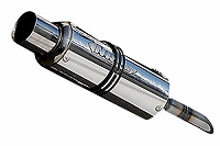 スタイルは迫力あるストレートのラインが魅力で、エキパイ部には38Ф、アルミサイレンサーアウターには110Ф、テールエンドには80Фのパイプを採用。50cc用とは思えないボリュームで存在感は抜群!マフラーステーには3Dベンダーによる6mm厚の耐震ベンダーステー採用で高い耐久性を実現している。